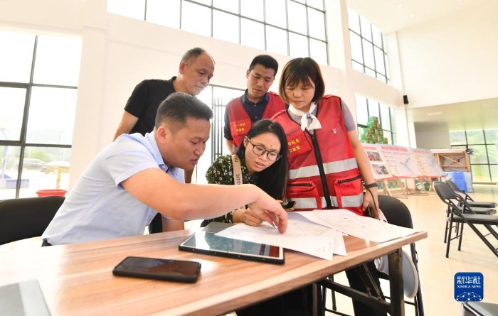 2022年9月6日,在浙江省杭州市臨安區(qū)錦南街道蘭錦社區(qū)黨群服務(wù)中心,黨員志愿者與社區(qū)的老年人進(jìn)行溝通。新華社記者 徐昱 攝