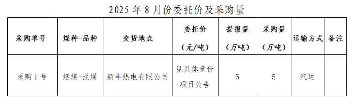內蒙古能源集團有限公司計劃對所屬內蒙古能源發電新豐熱電有限公司2025年8月電煤采購進行電子專場交易,交易信息現對外公開發布,凡符合條件的交易商均可參加。