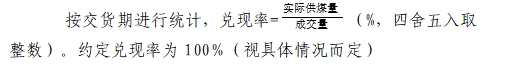 4.扣噸及罰沒噸數(shù)不參與兌現(xiàn)率計算,質量指標也不參與月度或供貨期加權平均計算。